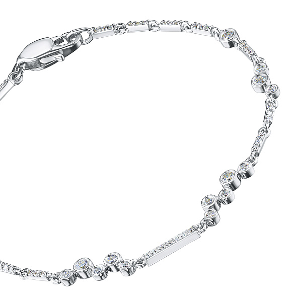 Браслет из белого золота с бриллиантами — изысканное украшение для стильного образа. Ненавязчиво демонстрирует ваш статус, материальное благосостояние, хороший вкус. Белое золото надолго сохраняет внешний вид, не боится коррозии. Благородный блеск драгоценного металла и роскошное сверкание бриллиантов не останутся незамеченными. Это именно тот штрих, которого не хватает деловому костюму или вечернему платью.