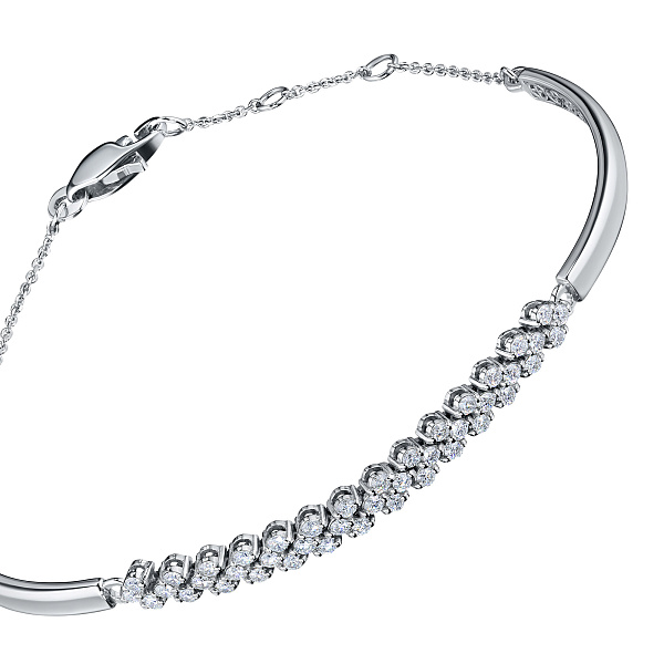 Браслет из белого золота с бриллиантами — изысканное украшение для стильного образа. Ненавязчиво демонстрирует ваш статус, материальное благосостояние, хороший вкус. Белое золото надолго сохраняет внешний вид, не боится коррозии. Благородный блеск драгоценного металла и роскошное сверкание бриллиантов не останутся незамеченными. Это именно тот штрих, которого не хватает деловому костюму или вечернему платью.