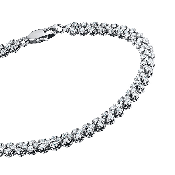 Браслет из белого золота — изысканное украшение для стильного образа. Ненавязчиво демонстрирует ваш статус, материальное благосостояние, хороший вкус. Белое золото надолго сохраняет внешний вид, не боится коррозии. Благородный блеск драгоценного металла и роскошное сверкание бриллиантов не останутся незамеченными. Это именно тот штрих, которого не хватает деловому костюму или вечернему платью.