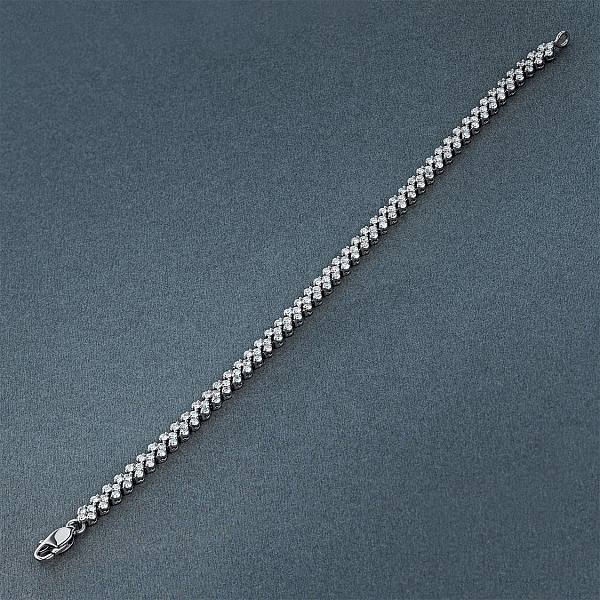 Браслет весит 8.67 граммов, имеет пробу 585, сертификационную бирку, продается в фирменной черной коробочке. Доступная цена, всего 1 711 250 ₸, от производителя «ЭПЛ Даймонд». Вставка — бриллианты высокой чистоты и прозрачности, без изъянов. Проверить качество камней вы можете в любой геммологической лаборатории.