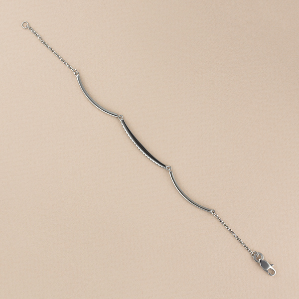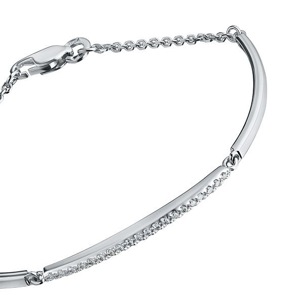 Браслет из белого золота — изысканное украшение для стильного образа. Ненавязчиво демонстрирует ваш статус, материальное благосостояние, хороший вкус. Белое золото надолго сохраняет внешний вид, не боится коррозии. Благородный блеск драгоценного металла и роскошное сверкание бриллиантов не останутся незамеченными. Это именно тот штрих, которого не хватает деловому костюму или вечернему платью.