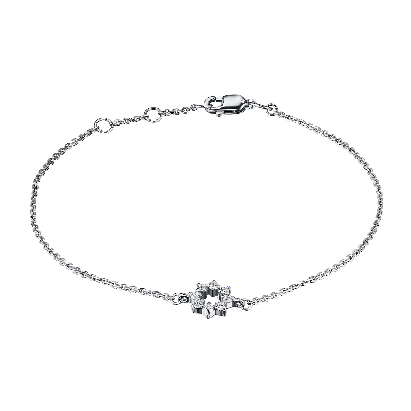 Браслет из белого золота — изысканное украшение для стильного образа. Ненавязчиво демонстрирует ваш статус, материальное благосостояние, хороший вкус. Белое золото надолго сохраняет внешний вид, не боится коррозии. Благородный блеск драгоценного металла и роскошное сверкание бриллиантов не останутся незамеченными. Это именно тот штрих, которого не хватает деловому костюму или вечернему платью.