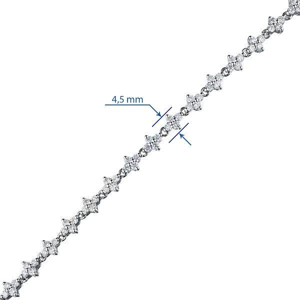 Браслет из белого золота — изысканное украшение для стильного образа. Ненавязчиво демонстрирует ваш статус, материальное благосостояние, хороший вкус. Белое золото надолго сохраняет внешний вид, не боится коррозии. Благородный блеск драгоценного металла и роскошное сверкание бриллиантов не останутся незамеченными. Это именно тот штрих, которого не хватает деловому костюму или вечернему платью.