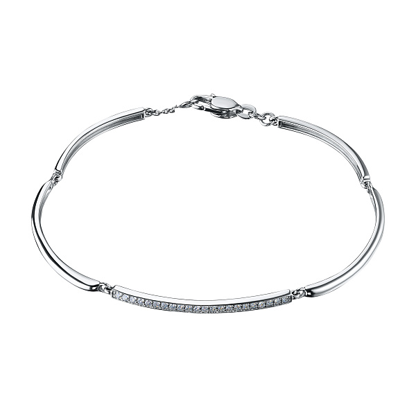 Браслет из белого золота — изысканное украшение для стильного образа. Ненавязчиво демонстрирует ваш статус, материальное благосостояние, хороший вкус. Белое золото надолго сохраняет внешний вид, не боится коррозии. Благородный блеск драгоценного металла и роскошное сверкание бриллиантов не останутся незамеченными. Это именно тот штрих, которого не хватает деловому костюму или вечернему платью.