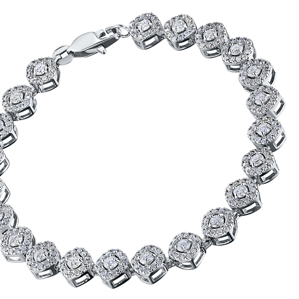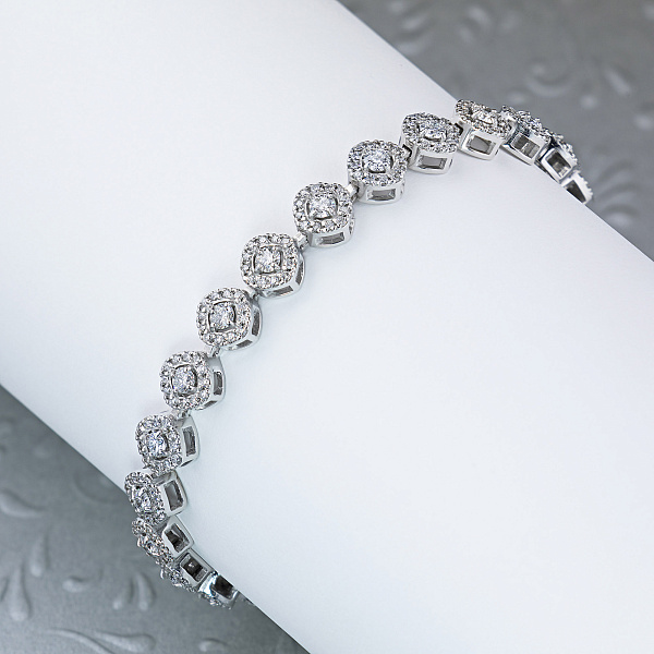Браслет из белого золота — изысканное украшение для стильного образа. Ненавязчиво демонстрирует ваш статус, материальное благосостояние, хороший вкус. Белое золото надолго сохраняет внешний вид, не боится коррозии. Благородный блеск драгоценного металла и роскошное сверкание бриллиантов не останутся незамеченными. Это именно тот штрих, которого не хватает деловому костюму или вечернему платью.