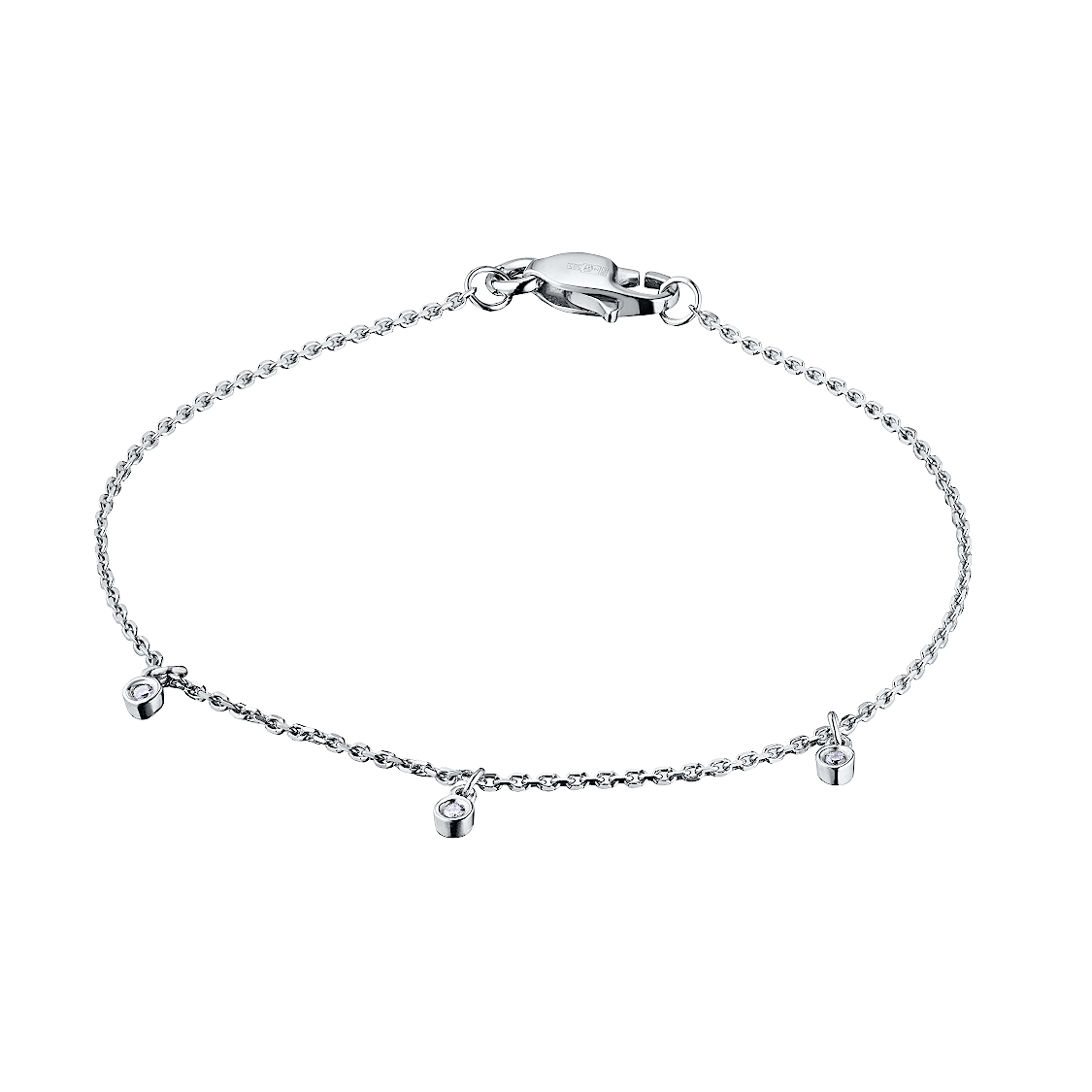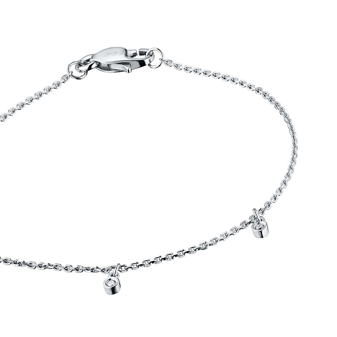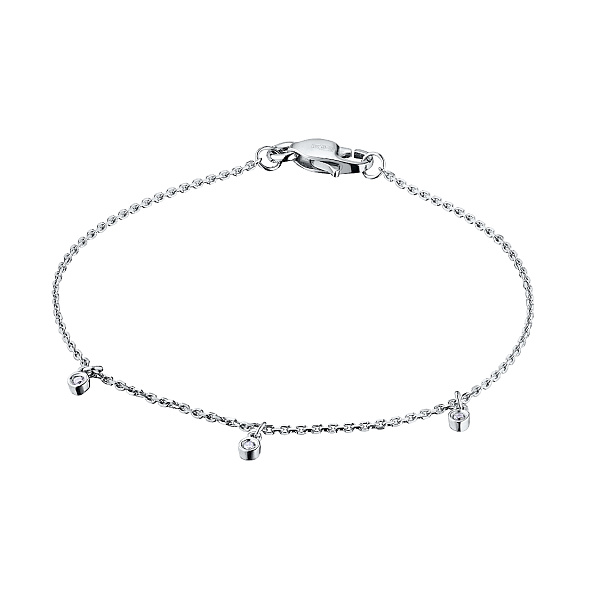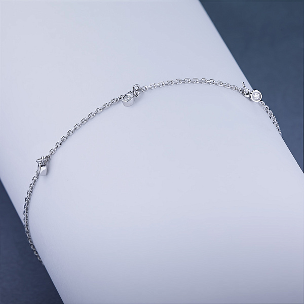 Браслет из белого золота — изысканное украшение для стильного образа. Ненавязчиво демонстрирует ваш статус, материальное благосостояние, хороший вкус. Белое золото надолго сохраняет внешний вид, не боится коррозии. Благородный блеск драгоценного металла и роскошное сверкание бриллиантов не останутся незамеченными. Это именно тот штрих, которого не хватает деловому костюму или вечернему платью.