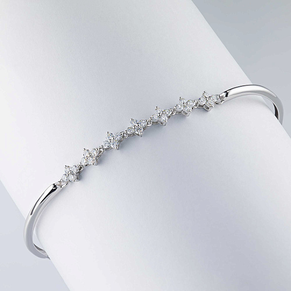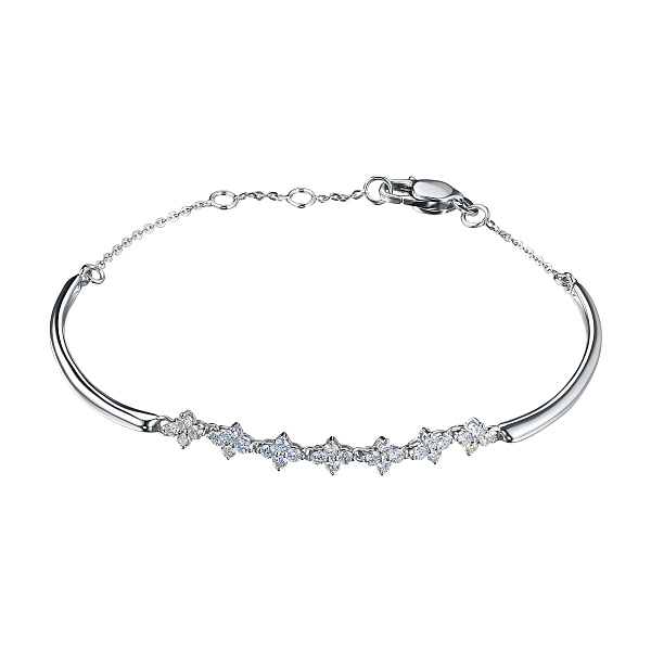 Браслет из белого золота — изысканное украшение для стильного образа. Ненавязчиво демонстрирует ваш статус, материальное благосостояние, хороший вкус. Белое золото надолго сохраняет внешний вид, не боится коррозии. Благородный блеск драгоценного металла и роскошное сверкание бриллиантов не останутся незамеченными. Это именно тот штрих, которого не хватает деловому костюму или вечернему платью.