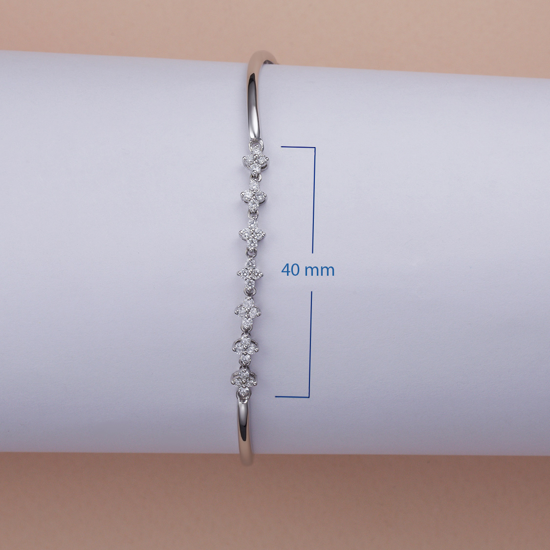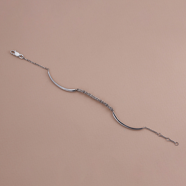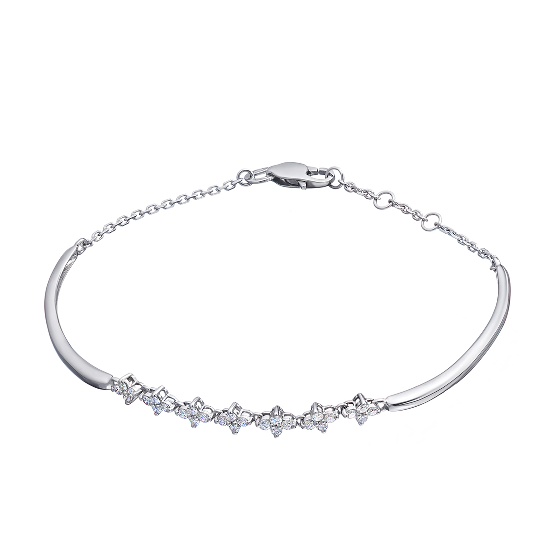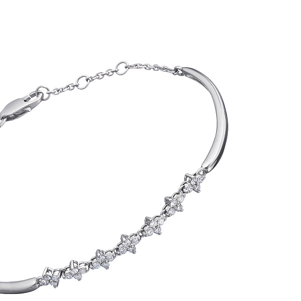 Браслет из белого золота — изысканное украшение для стильного образа. Ненавязчиво демонстрирует ваш статус, материальное благосостояние, хороший вкус. Белое золото надолго сохраняет внешний вид, не боится коррозии. Благородный блеск драгоценного металла и роскошное сверкание бриллиантов не останутся незамеченными. Это именно тот штрих, которого не хватает деловому костюму или вечернему платью.