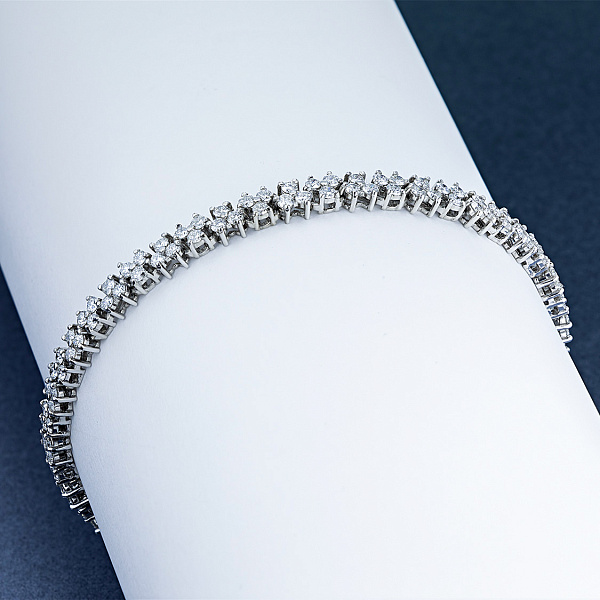 Браслет из белого золота — изысканное украшение для стильного образа. Ненавязчиво демонстрирует ваш статус, материальное благосостояние, хороший вкус. Белое золото надолго сохраняет внешний вид, не боится коррозии. Благородный блеск драгоценного металла и роскошное сверкание бриллиантов не останутся незамеченными. Это именно тот штрих, которого не хватает деловому костюму или вечернему платью.