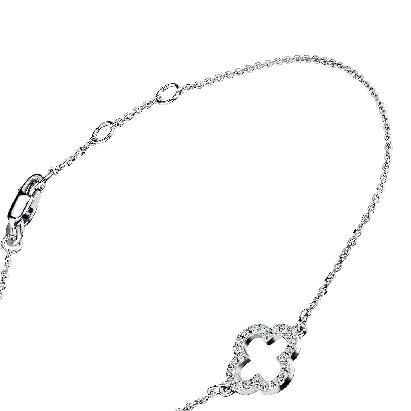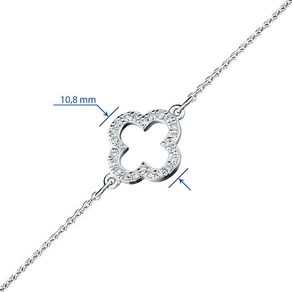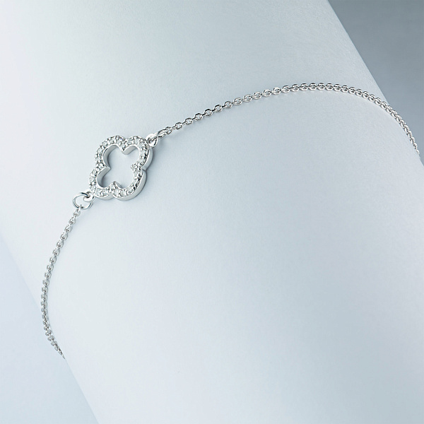 Браслет из белого золота — изысканное украшение для стильного образа. Ненавязчиво демонстрирует ваш статус, материальное благосостояние, хороший вкус. Белое золото надолго сохраняет внешний вид, не боится коррозии. Благородный блеск драгоценного металла и роскошное сверкание бриллиантов не останутся незамеченными. Это именно тот штрих, которого не хватает деловому костюму или вечернему платью.