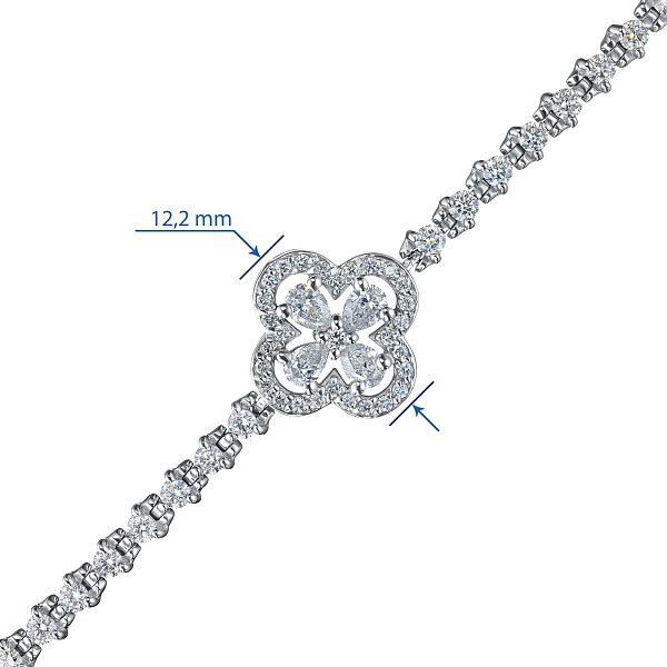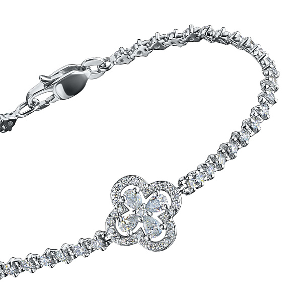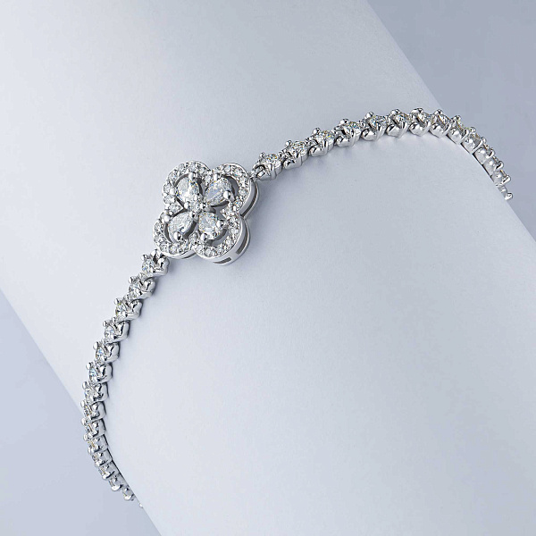 Браслет из белого золота — изысканное украшение для стильного образа. Ненавязчиво демонстрирует ваш статус, материальное благосостояние, хороший вкус. Белое золото надолго сохраняет внешний вид, не боится коррозии. Благородный блеск драгоценного металла и роскошное сверкание бриллиантов не останутся незамеченными. Это именно тот штрих, которого не хватает деловому костюму или вечернему платью.