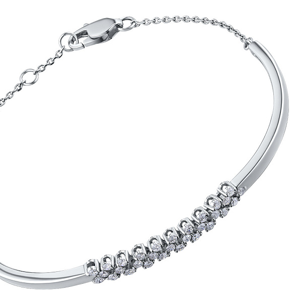 Браслет из белого золота — изысканное украшение для стильного образа. Ненавязчиво демонстрирует ваш статус, материальное благосостояние, хороший вкус. Белое золото надолго сохраняет внешний вид, не боится коррозии. Благородный блеск драгоценного металла и роскошное сверкание бриллиантов не останутся незамеченными. Это именно тот штрих, которого не хватает деловому костюму или вечернему платью.