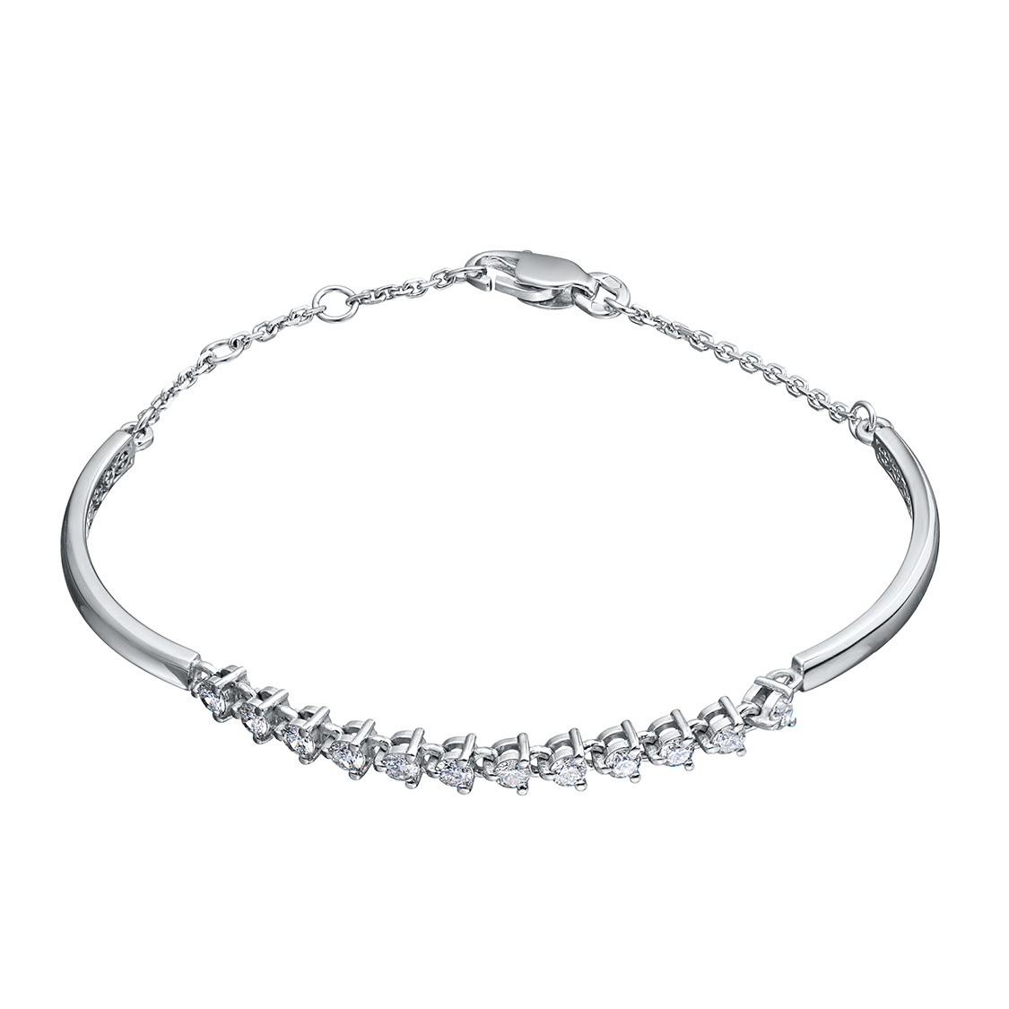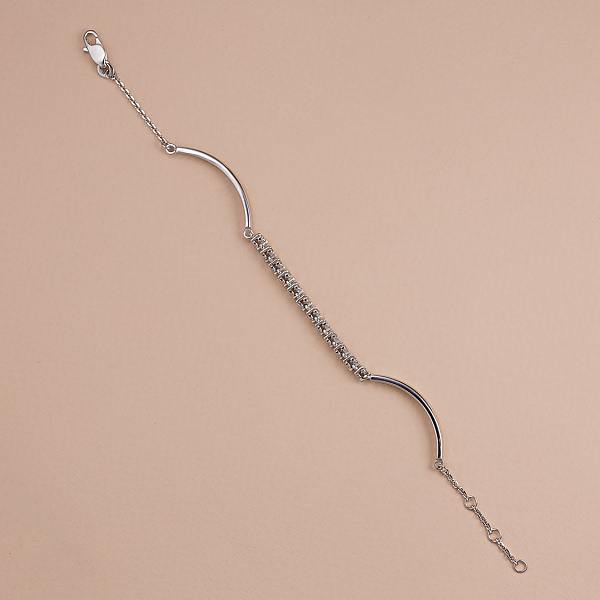 Браслет из белого золота — изысканное украшение для стильного образа. Ненавязчиво демонстрирует ваш статус, материальное благосостояние, хороший вкус. Белое золото надолго сохраняет внешний вид, не боится коррозии. Благородный блеск драгоценного металла и роскошное сверкание бриллиантов не останутся незамеченными. Это именно тот штрих, которого не хватает деловому костюму или вечернему платью.