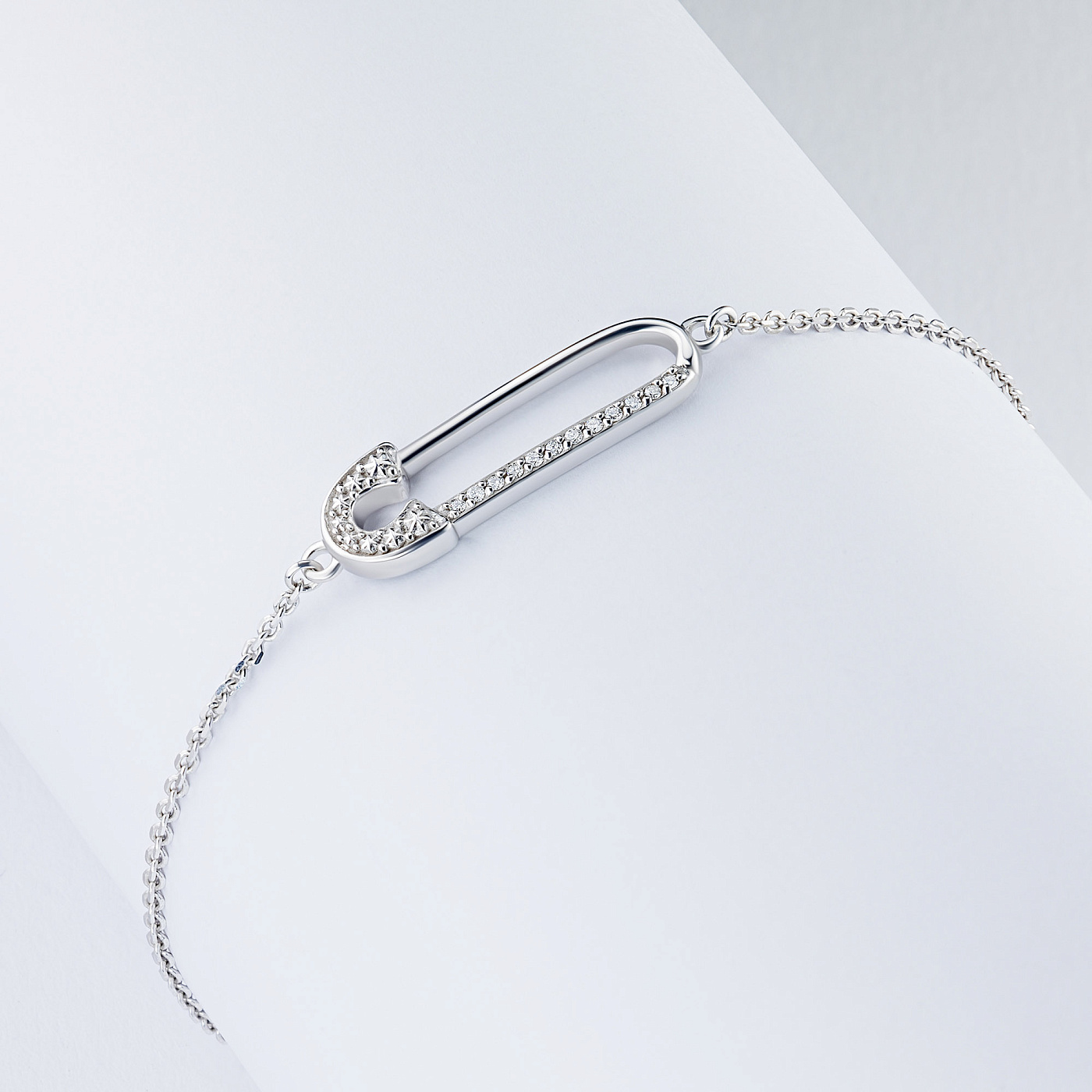 Браслет из белого золота — изысканное украшение для стильного образа. Ненавязчиво демонстрирует ваш статус, материальное благосостояние, хороший вкус. Белое золото надолго сохраняет внешний вид, не боится коррозии. Благородный блеск драгоценного металла и роскошное сверкание бриллиантов не останутся незамеченными. Это именно тот штрих, которого не хватает деловому костюму или вечернему платью.