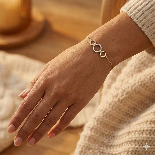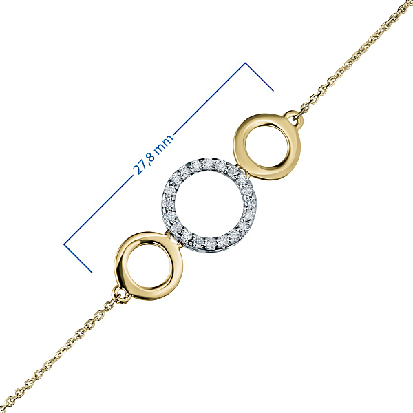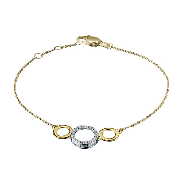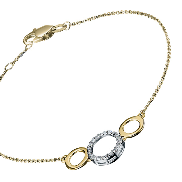 Браслет из комбинированного золота — изысканное украшение для стильного образа. Ненавязчиво демонстрирует ваш статус, материальное благосостояние, хороший вкус. Комбинированное золото надолго сохраняет внешний вид, не боится коррозии. Благородный блеск драгоценного металла и роскошное сверкание бриллиантов не останутся незамеченными. Это именно тот штрих, которого не хватает деловому костюму или вечернему платью.