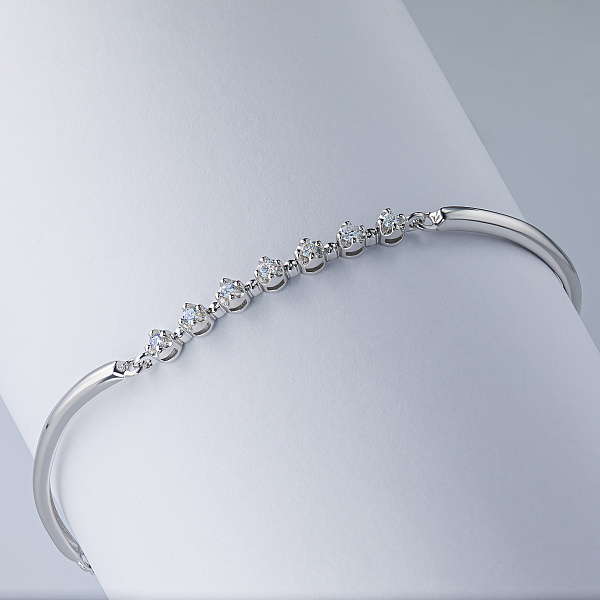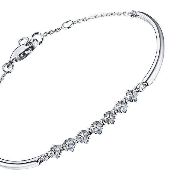 Браслет из серебра — изысканное украшение для стильного образа. Ненавязчиво демонстрирует ваш статус, материальное благосостояние, хороший вкус. Серебро надолго сохраняет внешний вид, не боится коррозии. Благородный блеск драгоценного металла и роскошное сверкание бриллиантов не останутся незамеченными. Это именно тот штрих, которого не хватает деловому костюму или вечернему платью.