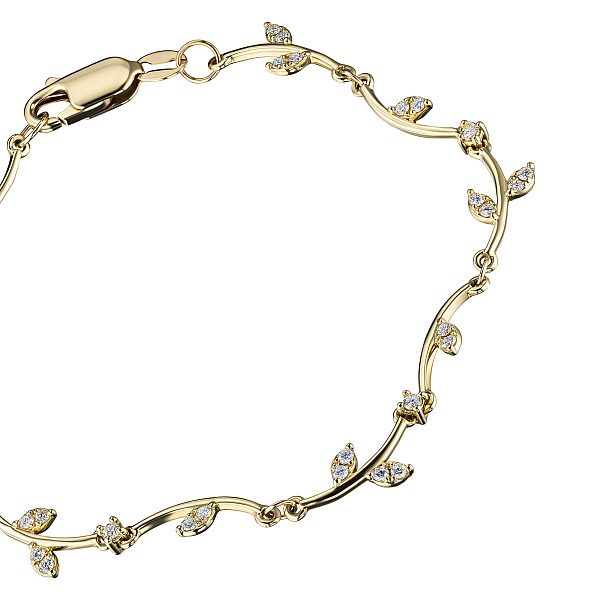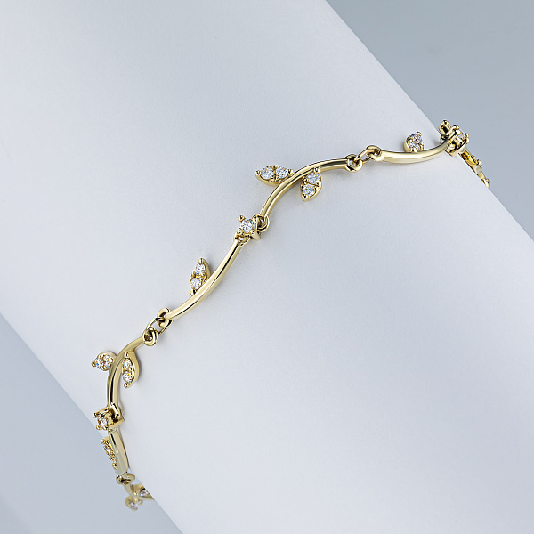 Браслет из желтого золота — изысканное украшение для стильного образа. Ненавязчиво демонстрирует ваш статус, материальное благосостояние, хороший вкус. Желтое золото надолго сохраняет внешний вид, не боится коррозии. Благородный блеск драгоценного металла и роскошное сверкание бриллиантов не останутся незамеченными. Это именно тот штрих, которого не хватает деловому костюму или вечернему платью.