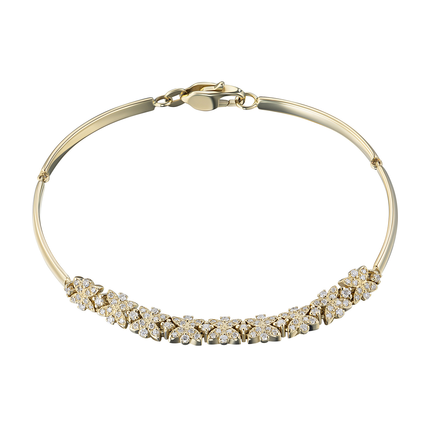 Браслет из желтого золота — изысканное украшение для стильного образа. Ненавязчиво демонстрирует ваш статус, материальное благосостояние, хороший вкус. Желтое золото надолго сохраняет внешний вид, не боится коррозии. Благородный блеск драгоценного металла и роскошное сверкание бриллиантов не останутся незамеченными. Это именно тот штрих, которого не хватает деловому костюму или вечернему платью.