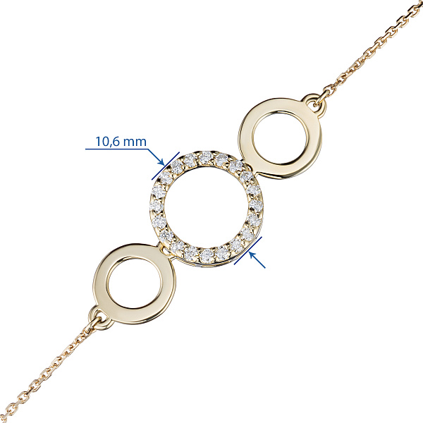 Браслет из желтого золота — изысканное украшение для стильного образа. Ненавязчиво демонстрирует ваш статус, материальное благосостояние, хороший вкус. Желтое золото надолго сохраняет внешний вид, не боится коррозии. Благородный блеск драгоценного металла и роскошное сверкание бриллиантов не останутся незамеченными. Это именно тот штрих, которого не хватает деловому костюму или вечернему платью.