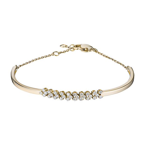 Браслет из желтого золота — изысканное украшение для стильного образа. Ненавязчиво демонстрирует ваш статус, материальное благосостояние, хороший вкус. Желтое золото надолго сохраняет внешний вид, не боится коррозии. Благородный блеск драгоценного металла и роскошное сверкание бриллиантов не останутся незамеченными. Это именно тот штрих, которого не хватает деловому костюму или вечернему платью.