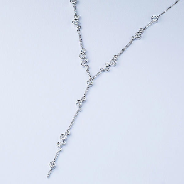 Колье из белого золота — яркая модель размером 45.0, которая займет видное место в вашей коллекции драгоценностей или станет идеальным презентом дорогому человеку. Роскошное, изящное и притягательное изделие с якутскими камнями, имеющими безупречную огранку и эталонную прозрачность, будет ярким акцентом в любом образе и сделает элегантным даже самый простой наряд. Белое золото (585 проба) — идеальный фон для бриллиантов, в полной мере раскрывающий их красоту и утонченность. Вес модели составляет 10.19 граммов, на шее она смотрится очень аккуратно и не доставляет дискомфорта. 1 772 750 ₸ — приемлемая цена за возможность выделиться из толпы и получить множество восхищенных взглядов.