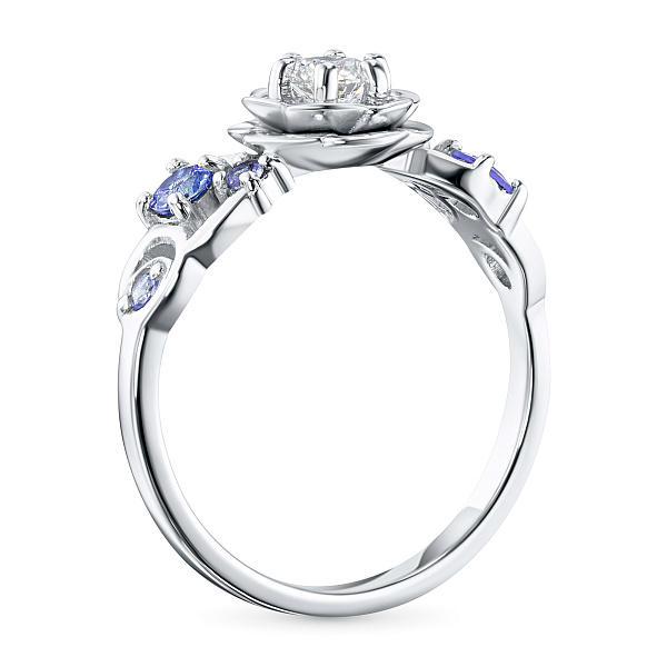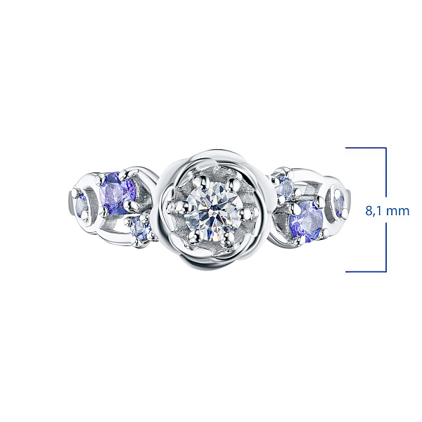 Кольцо из белого золота с бриллиантом и танзанитами — эксклюзивное украшение компании «ЭПЛ Даймонд». Это идеальный подарок для близкого человека, возможность продемонстрировать свой статус, хороший вкус. В изделии используются бриллианты высокой чистоты и прозрачности, без изъянов. Белое золото великолепно смотрится на руке, хорошо сочетается с другими украшениями. Соберите свой собственный гарнитур в ювелирном магазине «ЭПЛ»! Вес изделия: 3.61 грамма.