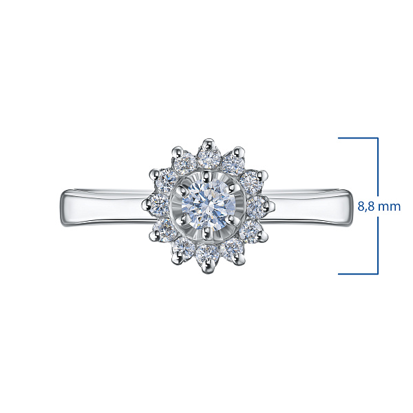 Кольцо из белого золота — эксклюзивное украшение компании «ЭПЛ Даймонд». Это идеальный подарок для близкого человека, возможность продемонстрировать свой статус, хороший вкус. В изделии используются бриллианты высокой чистоты и прозрачности, без изъянов. Белое золото великолепно смотрится на руке, хорошо сочетается с другими украшениями. Соберите свой собственный гарнитур в ювелирном магазине «ЭПЛ»! Вес изделия: 3.89 грамма.