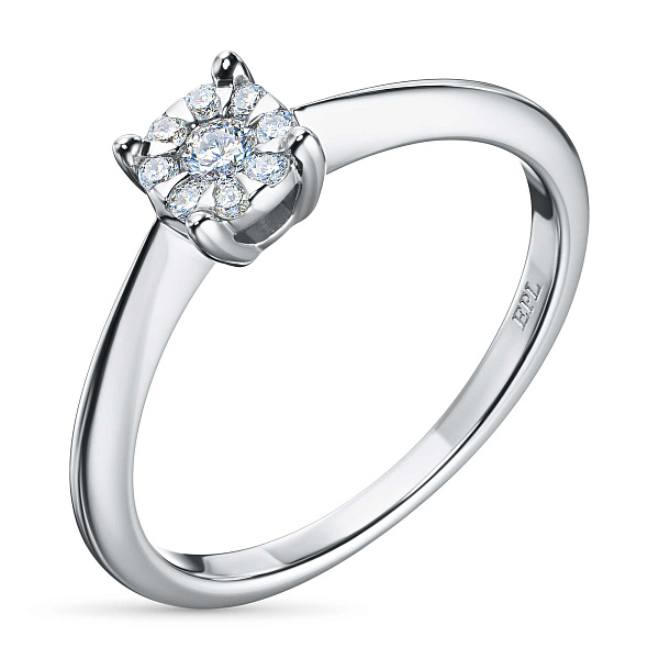 Кольцо из белого золота — эксклюзивное украшение компании «ЭПЛ Даймонд». Это идеальный подарок для близкого человека, возможность продемонстрировать свой статус, хороший вкус. В изделии используются бриллианты высокой чистоты и прозрачности, без изъянов. Белое золото великолепно смотрится на руке, хорошо сочетается с другими украшениями. Соберите свой собственный гарнитур в ювелирном магазине «ЭПЛ»! Вес изделия: 2.37 грамма.