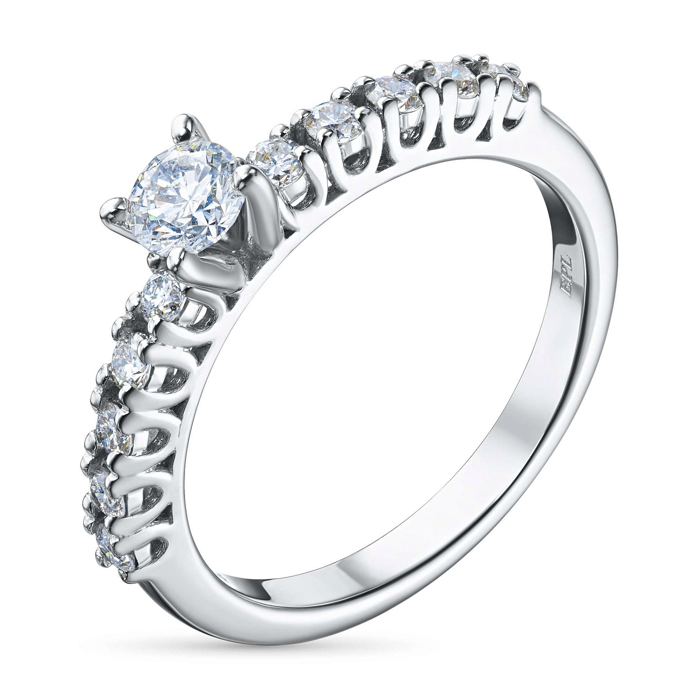Кольцо из белого золота — эксклюзивное украшение компании «ЭПЛ Даймонд». Это идеальный подарок для близкого человека, возможность продемонстрировать свой статус, хороший вкус. В изделии используются бриллианты высокой чистоты и прозрачности, без изъянов. Белое золото великолепно смотрится на руке, хорошо сочетается с другими украшениями. Соберите свой собственный гарнитур в ювелирном магазине «ЭПЛ»! Вес изделия: 2.27 грамма.