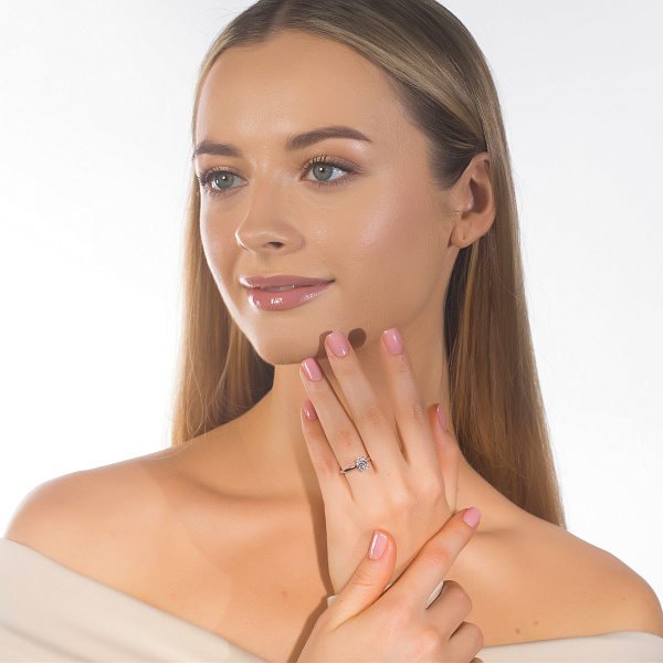 Помолвочное кольцо из белого золота — эксклюзивное украшение компании «ЭПЛ Даймонд». Это идеальный подарок для близкого человека, возможность продемонстрировать свой статус, хороший вкус. В изделии используются бриллианты высокой чистоты и прозрачности, без изъянов. Белое золото великолепно смотрится на руке, хорошо сочетается с другими украшениями. Соберите свой собственный гарнитур в ювелирном магазине «ЭПЛ»! Вес изделия: 2.21 грамма.