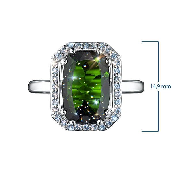 Кольцо из комбинированного золота с и хромдиопсидом — эксклюзивное украшение компании «ЭПЛ Даймонд». Это идеальный подарок для близкого человека, возможность продемонстрировать свой статус, хороший вкус. В изделии используются бриллианты высокой чистоты и прозрачности, без изъянов. Комбинированное золото великолепно смотрится на руке, хорошо сочетается с другими украшениями. Соберите свой собственный гарнитур в ювелирном магазине «ЭПЛ»! Вес изделия: 4.76 грамма.