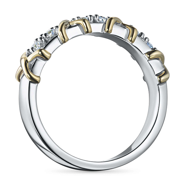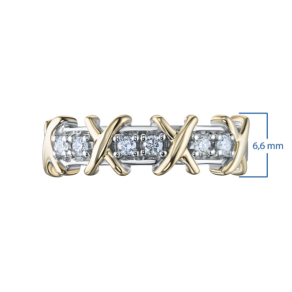 Кольцо из комбинированного золота — эксклюзивное украшение компании «ЭПЛ Даймонд». Это идеальный подарок для близкого человека, возможность продемонстрировать свой статус, хороший вкус. В изделии используются бриллианты высокой чистоты и прозрачности, без изъянов. Комбинированное золото великолепно смотрится на руке, хорошо сочетается с другими украшениями. Соберите свой собственный гарнитур в ювелирном магазине «ЭПЛ»! Вес изделия: 4.25 грамма.