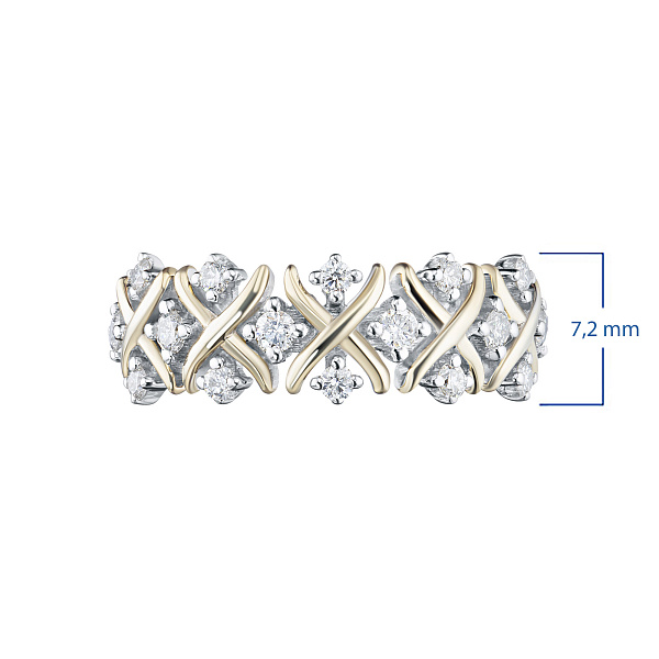 Кольцо из комбинированного золота — эксклюзивное украшение компании «ЭПЛ Даймонд». Это идеальный подарок для близкого человека, возможность продемонстрировать свой статус, хороший вкус. В изделии используются бриллианты высокой чистоты и прозрачности, без изъянов. Комбинированное золото великолепно смотрится на руке, хорошо сочетается с другими украшениями. Соберите свой собственный гарнитур в ювелирном магазине «ЭПЛ»! Вес изделия: 5.53 граммов.