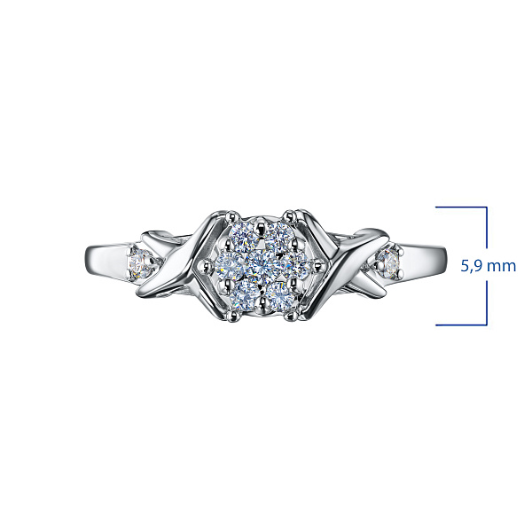 Кольцо из серебра — эксклюзивное украшение компании «ЭПЛ Даймонд». Это идеальный подарок для близкого человека, возможность продемонстрировать свой статус, хороший вкус. В изделии используются бриллианты высокой чистоты и прозрачности, без изъянов. Серебро великолепно смотрится на руке, хорошо сочетается с другими украшениями. Соберите свой собственный гарнитур в ювелирном магазине «ЭПЛ»! Вес изделия: 2.4 грамма.