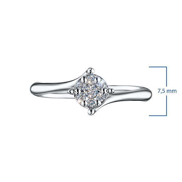 Кольцо из серебра — эксклюзивное украшение компании «ЭПЛ Даймонд». Это идеальный подарок для близкого человека, возможность продемонстрировать свой статус, хороший вкус. В изделии используются бриллианты высокой чистоты и прозрачности, без изъянов. Серебро великолепно смотрится на руке, хорошо сочетается с другими украшениями. Соберите свой собственный гарнитур в ювелирном магазине «ЭПЛ»! Вес изделия: 2.37 грамма.