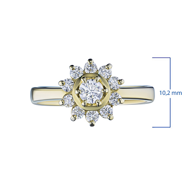 Классическое кольцо из желтого золота с бриллиантами — эксклюзивное украшение компании «ЭПЛ Даймонд». Это идеальный подарок для близкого человека, возможность продемонстрировать свой статус, хороший вкус. В изделии используются бриллианты высокой чистоты и прозрачности, без изъянов. Желтое золото великолепно смотрится на руке, хорошо сочетается с другими украшениями. Соберите свой собственный гарнитур в ювелирном магазине «ЭПЛ»! Вес изделия: 4.59 грамма.