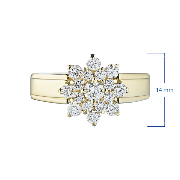 Кольцо из желтого золота с бриллиантами — эксклюзивное украшение компании «ЭПЛ Даймонд». Это идеальный подарок для близкого человека, возможность продемонстрировать свой статус, хороший вкус. В изделии используются бриллианты высокой чистоты и прозрачности, без изъянов. Желтое золото великолепно смотрится на руке, хорошо сочетается с другими украшениями. Соберите свой собственный гарнитур в ювелирном магазине «ЭПЛ»! Вес изделия: 5.56 граммов.