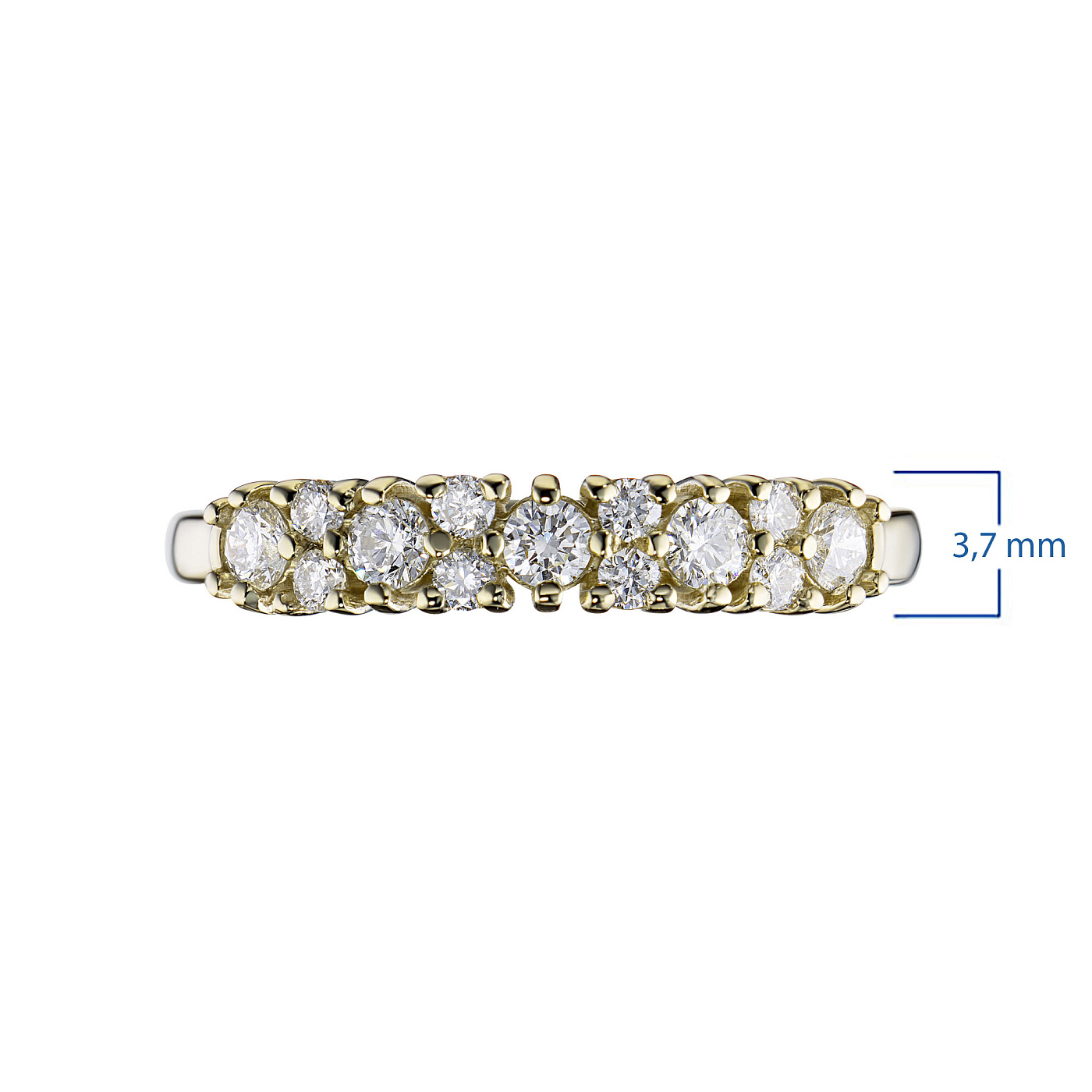 Кольцо из желтого золота — эксклюзивное украшение компании «ЭПЛ Даймонд». Это идеальный подарок для близкого человека, возможность продемонстрировать свой статус, хороший вкус. В изделии используются бриллианты высокой чистоты и прозрачности, без изъянов. Желтое золото великолепно смотрится на руке, хорошо сочетается с другими украшениями. Соберите свой собственный гарнитур в ювелирном магазине «ЭПЛ»! Вес изделия: 2.79 грамма.