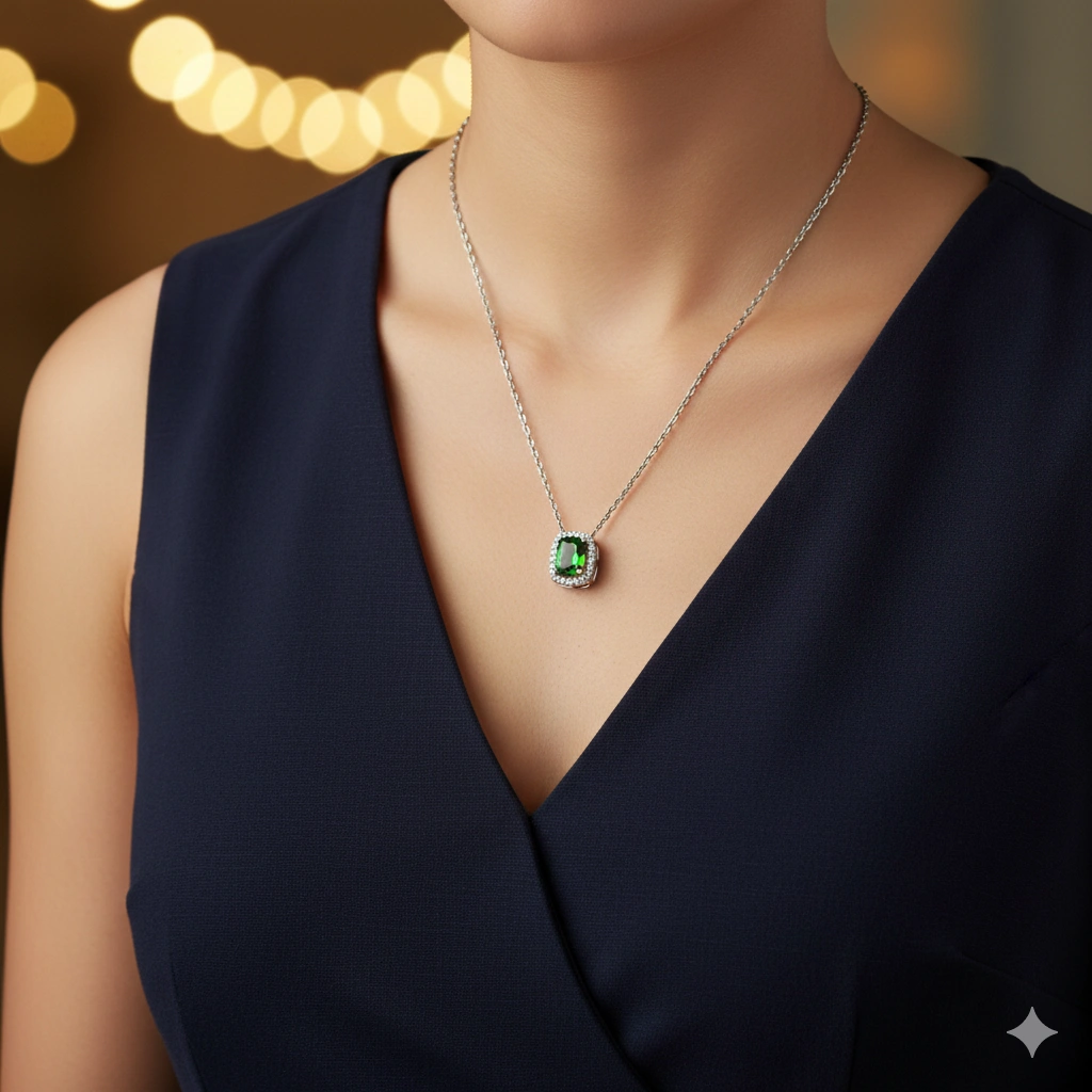 Подвеска из комбинированного золота с и хромдиопсидом — стильный аксессуар для торжественного случая и на каждый день. Комбинированное золото элегантно смотрится в любом образе, самостоятельно или в сочетании с другими изделиями. Наши цены удивят вас — всего 169 400 ₸ за изделие! Подвеска в обязательном порядке проходит опробование в Пробирной Палате РФ (585 проба). Есть сертификационная бирка.