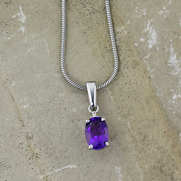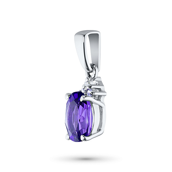 Подвеска из серебра с аметистом и бриллиантами — стильный аксессуар для торжественного случая и на каждый день. Серебро элегантно смотрится в любом образе, самостоятельно или в сочетании с другими изделиями. Наши цены удивят вас — всего 81 500 ₸ за изделие! Подвеска в обязательном порядке проходит опробование в Пробирной Палате РФ (925 проба). Есть сертификационная бирка.