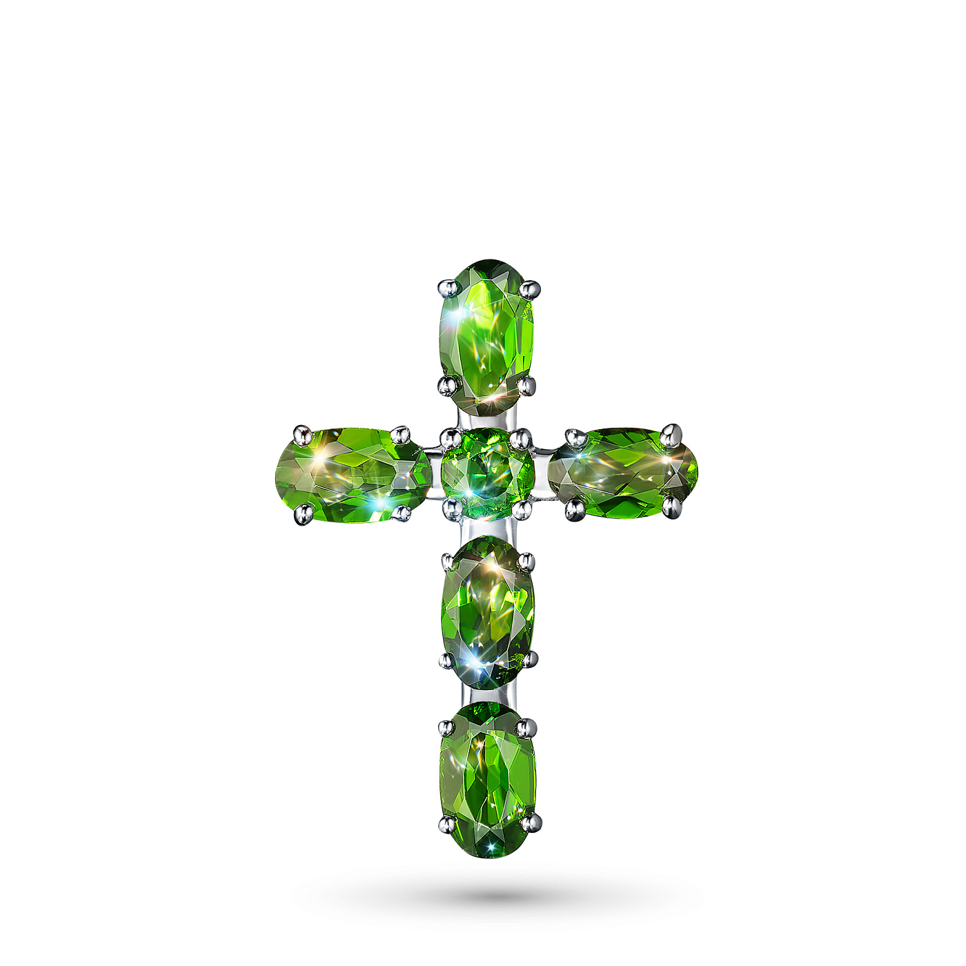 Подвеска из серебра с хромдиопсидами — стильный аксессуар для торжественного случая и на каждый день. Серебро элегантно смотрится в любом образе, самостоятельно или в сочетании с другими изделиями. Наши цены удивят вас — всего 60 250 ₸ за изделие! Подвеска в обязательном порядке проходит опробование в Пробирной Палате РФ (925 проба). Есть сертификационная бирка.