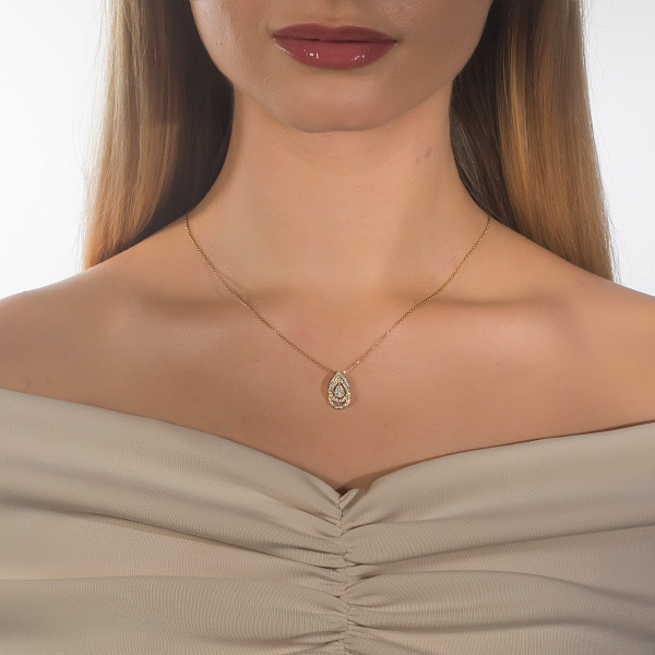 Подвеска из желтого золота — стильный аксессуар для торжественного случая и на каждый день. Желтое золото элегантно смотрится в любом образе, самостоятельно или в сочетании с другими изделиями. Наши цены удивят вас — всего 290 650 ₸ за изделие! Подвеска в обязательном порядке проходит опробование в Пробирной Палате РФ (585 проба). Есть сертификационная бирка.