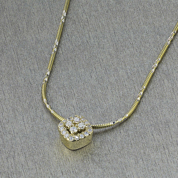 Подвеска из желтого золота — стильный аксессуар для торжественного случая и на каждый день. Желтое золото элегантно смотрится в любом образе, самостоятельно или в сочетании с другими изделиями. Наши цены удивят вас — всего 151 300 ₸ за изделие! Подвеска в обязательном порядке проходит опробование в Пробирной Палате РФ (585 проба). Есть сертификационная бирка.