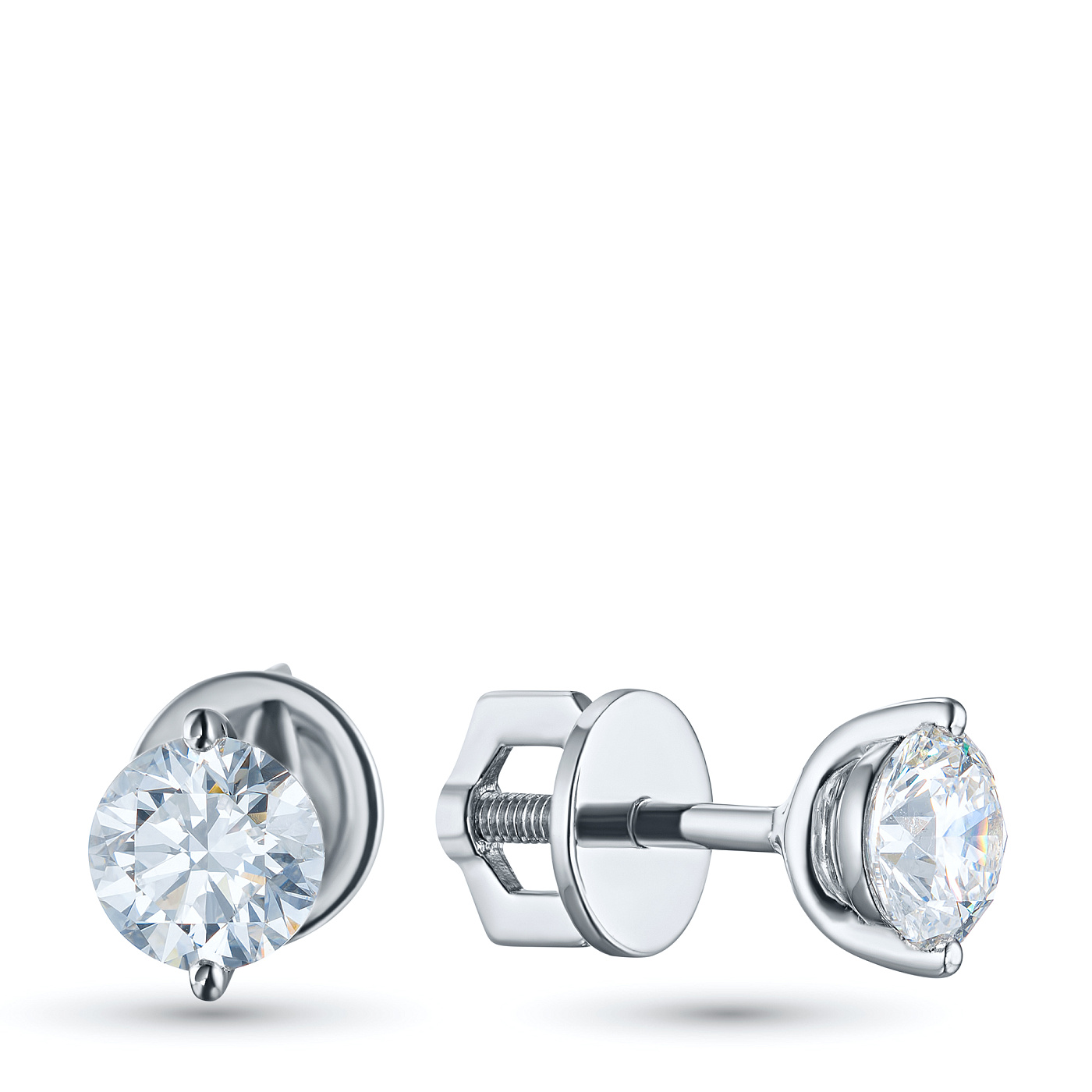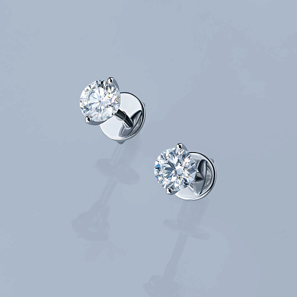 Пусеты из белого золота — великолепное пополнение вашей коллекции украшений. Белое золото подчеркивает игру света на алмазных гранях, не боится влаги, подходит для повседневного ношения. Наши товары реализуются только в фирменных салонах.