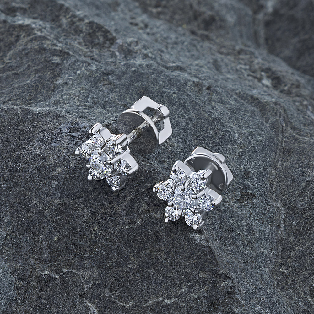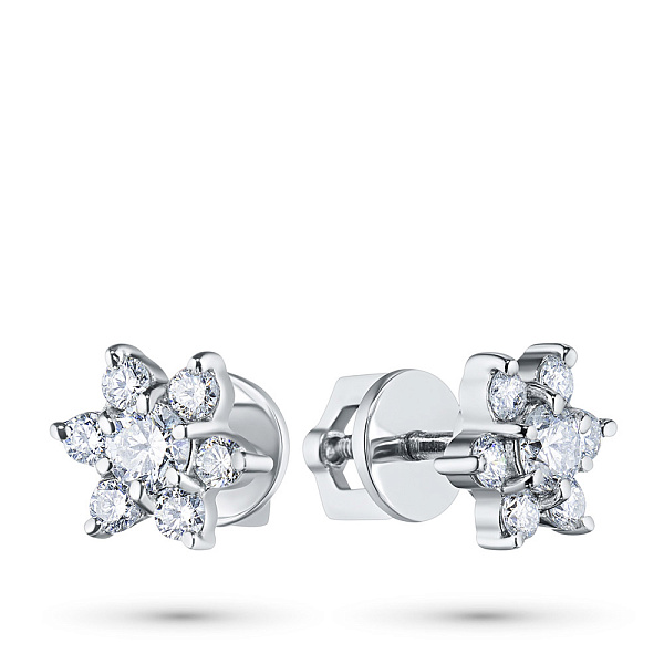 Пусеты из белого золота — великолепное пополнение вашей коллекции украшений. Белое золото подчеркивает игру света на алмазных гранях, не боится влаги, подходит для повседневного ношения. Наши товары реализуются только в фирменных салонах.