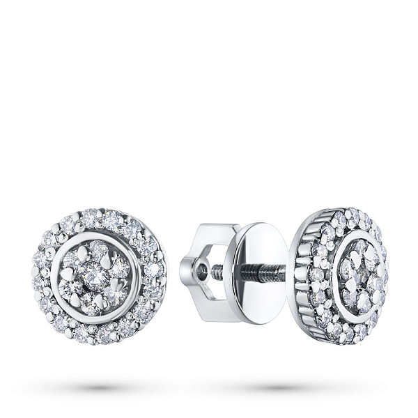 Пусеты из белого золота — великолепное пополнение вашей коллекции украшений. Белое золото подчеркивает игру света на алмазных гранях, не боится влаги, подходит для повседневного ношения. Наши товары реализуются только в фирменных салонах.