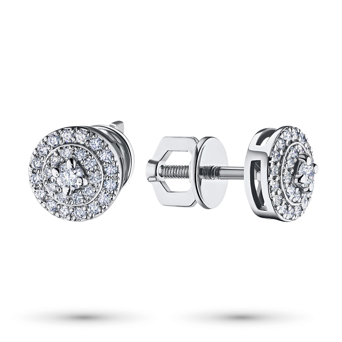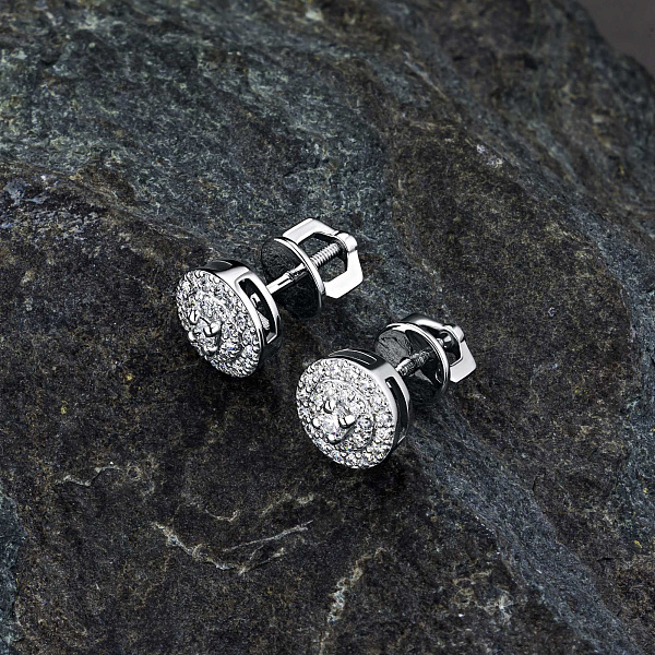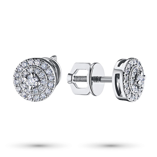 Пусеты из белого золота — великолепное пополнение вашей коллекции украшений. Белое золото подчеркивает игру света на алмазных гранях, не боится влаги, подходит для повседневного ношения. Наши товары реализуются только в фирменных салонах.