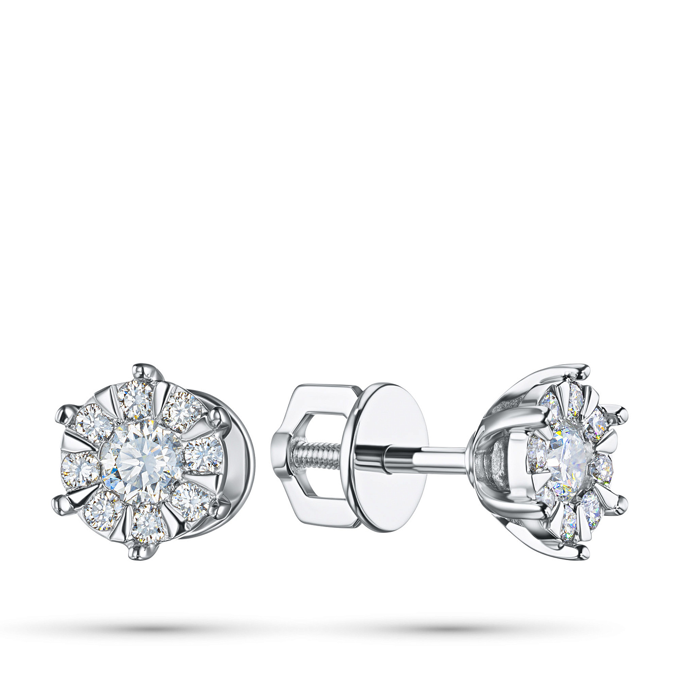 Пусеты из белого золота — великолепное пополнение вашей коллекции украшений. Белое золото подчеркивает игру света на алмазных гранях, не боится влаги, подходит для повседневного ношения. Наши товары реализуются только в фирменных салонах.