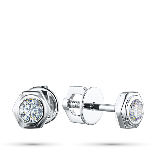Пусеты из белого золота — великолепное пополнение вашей коллекции украшений. Белое золото подчеркивает игру света на алмазных гранях, не боится влаги, подходит для повседневного ношения. Наши товары реализуются только в фирменных салонах.