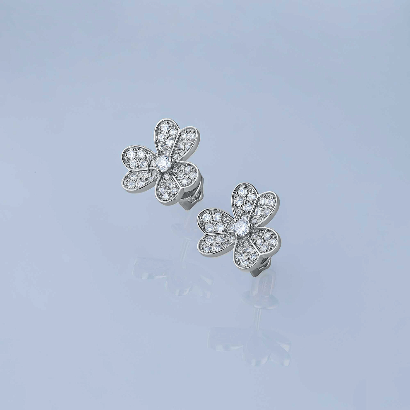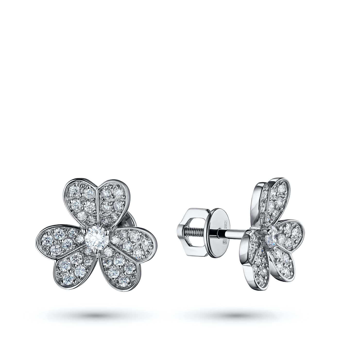 Пусеты из белого золота — великолепное пополнение вашей коллекции украшений. Белое золото подчеркивает игру света на алмазных гранях, не боится влаги, подходит для повседневного ношения. Наши товары реализуются только в фирменных салонах.